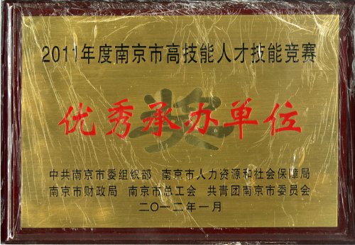 近日由中共南京市委组织部、南京市人力资源和社会保障局、南京市财政局、南京市总工会、共青团南京市委员会等5部门传来喜讯,我校荣获“2011年度南京市高技能人才技能竞赛优秀承办单位”称号。