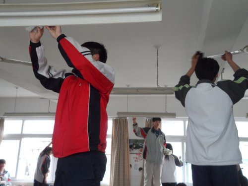 4月6日下午三节课后,生活部开展的“清洁卫生伴我行”之全校大扫除活动也顺利地进行。各班同学们都事先准备好所需要的卫生消毒工具,打扫时同学们不怕脏不怕累,不放过教室里任何一个死角。落满灰尘的电灯、吊扇被擦得一尘不染,污迹斑斑的玻璃窗变得明亮如新,整个教室变得焕然一新。
