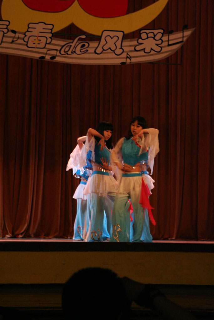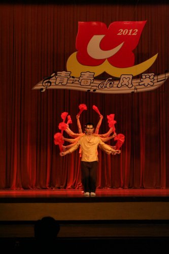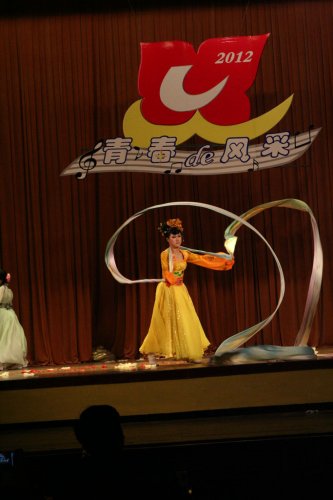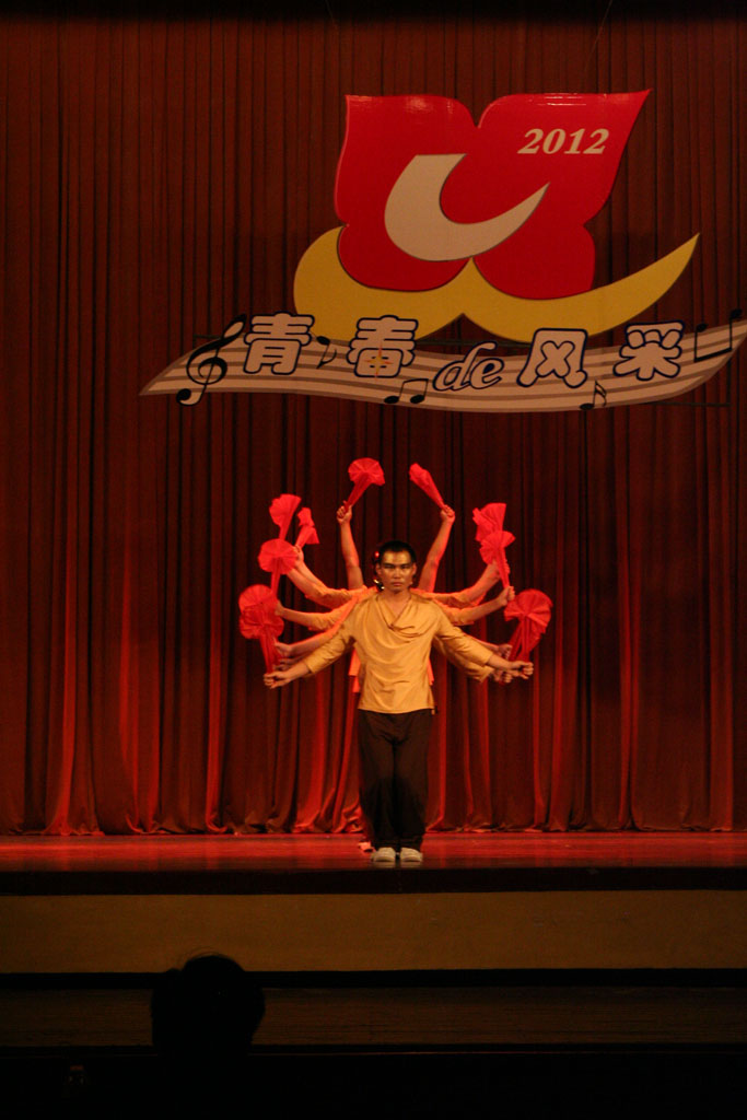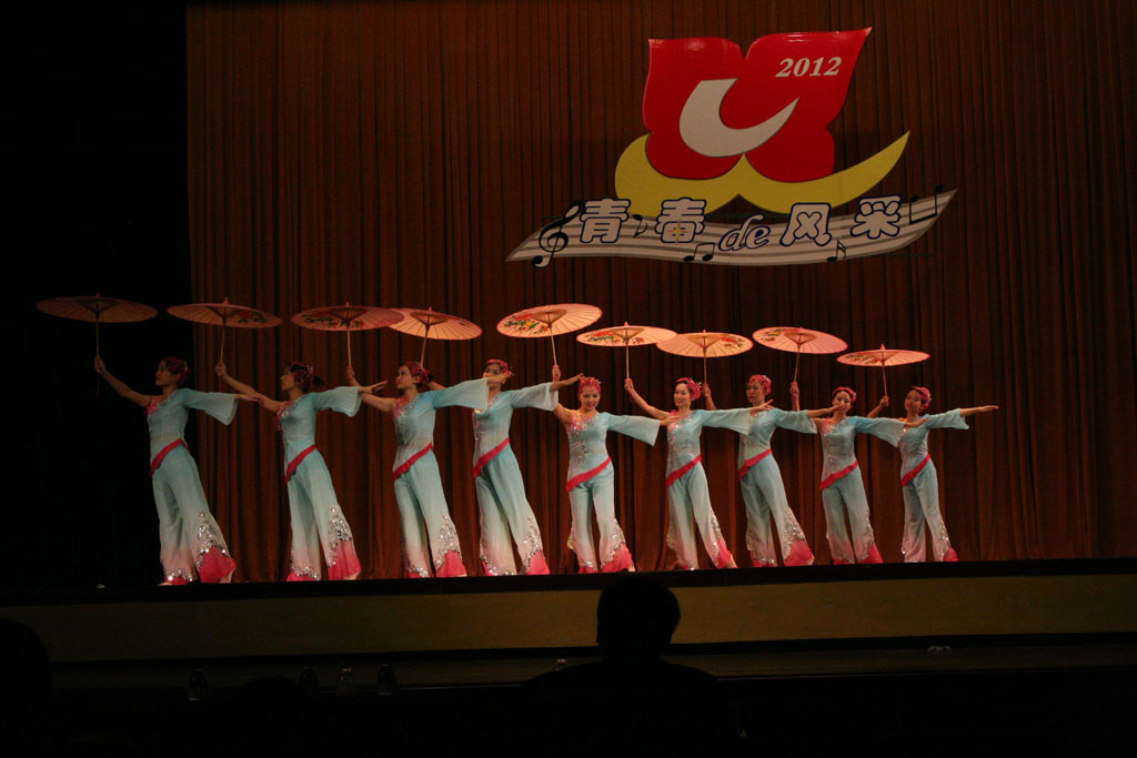伴着舒缓的音乐,首先上台表演的是1001班的同学。他们用荧光笔在特制的“画布”上画出了一幅幅动人的画卷——印象中国、印象南京、印象财校,独特的创意,精湛的画技,既展现出了动漫班的绘画基本功,更吸引了大家的眼球,不少同学都是屏住呼吸看完的这一幕。088班的歌舞《新贵妃醉酒》将整场演出推向了第一个高潮。达艺峰同学反串的贵妃以一袭华丽的古装和灵动的舞姿博得了全场的掌声,飞舞的水袖仿佛把人带入了大唐的梦境。夫子庙校区街舞社的《Keep ondancing》成为演出的又一个高潮。有力的动作伴着强节奏感的音乐,让全场同学火成一片,欢呼声此起彼伏。而新街口校区学生会带来的《曾经的梦》,以唯美的舞姿,优雅的步伐,展现了学生会干部的风采。两个多小时的演出在1104班的舞蹈《黄河源头》中落下了帷幕。