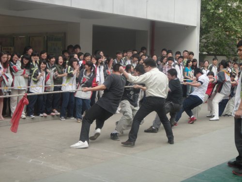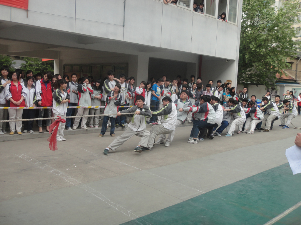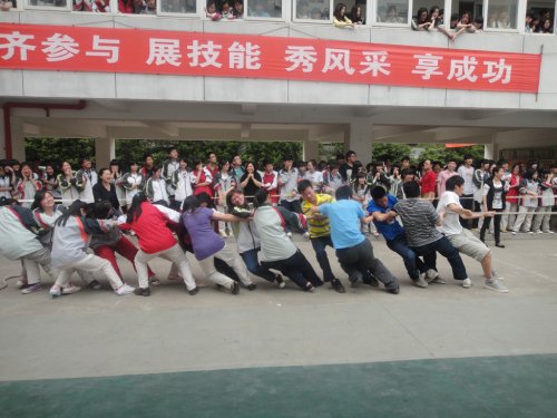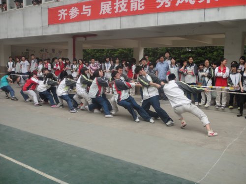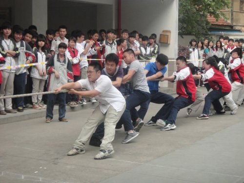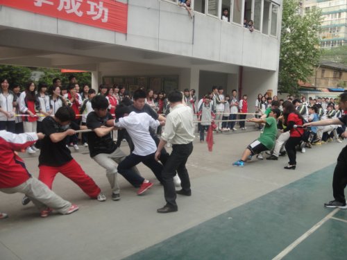为了丰富校园文化氛围,增强学生的集体观念,提高班级凝聚力,同时让班级所有的学生能够为班级出一份力,添一份彩,我校新街口校区于2012年5月18日下午两节课后举办了“团结奋进,据“厘”力争”为主题的大型拔河比赛,全体同学纷纷以极大的热情参与到此次活动中。