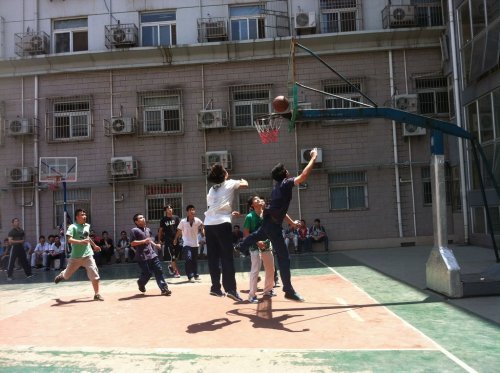 为了丰富学生的课余生活,同时为学校篮球队输入新鲜血液,我校社团部篮球社于2012年5月28日中午在学校的篮球场组织了一场以“巅峰战场,力挽狂篮”为主题的社员友谊赛。