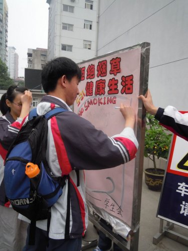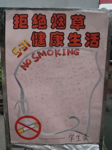 为了抵制烟草诱惑,摒弃不良习惯,建立健康文明的生活环境,在5月31日世界无烟日到来之际,我校新街口校区学生会开展以“拒绝烟草,健康生活”为主题的禁烟系列活动,让同学们深刻了解吸烟的危害和禁烟的必要性,以实际行动来支持禁烟、倡导禁烟。