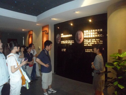 在校团委委员的带领下,全体同学于6月16日上午9点30在南京税收文化基地进行了参观。参观主要围绕税收历史、税收基本常识、税收与社会文明发展等内容进行。一进展厅,同学们就被展厅内陈列着的丰富的图片、模型以及历朝税收票据、印章等实物所深深吸引,展厅解说员详细地向同学们介绍了各国的税制改革和发展趋势。展厅内的多媒体触摸屏、幻影成像等现代科技手段让同学们大开眼界。最后,同学们在观看税收纪录片中结束了参观。