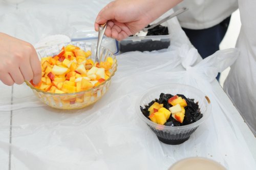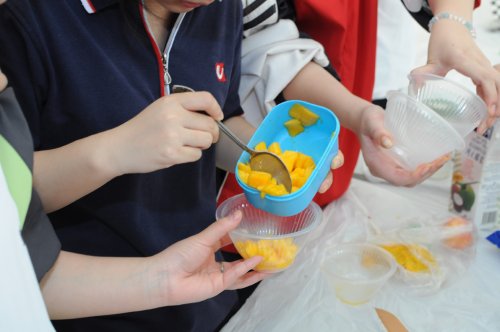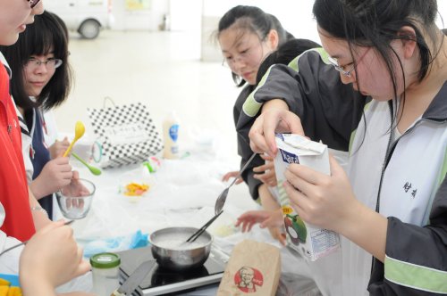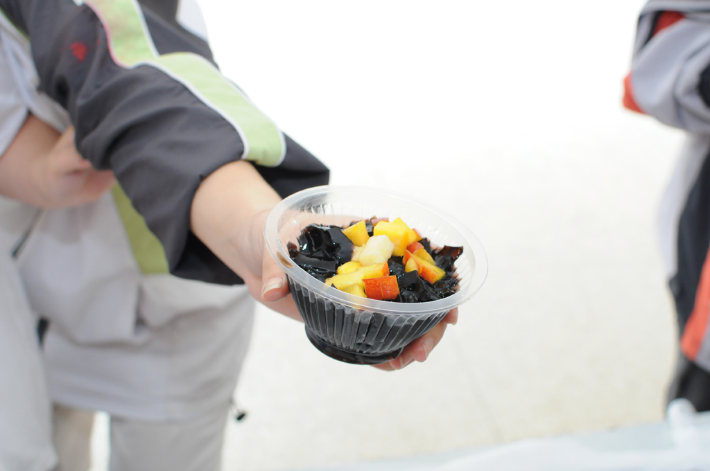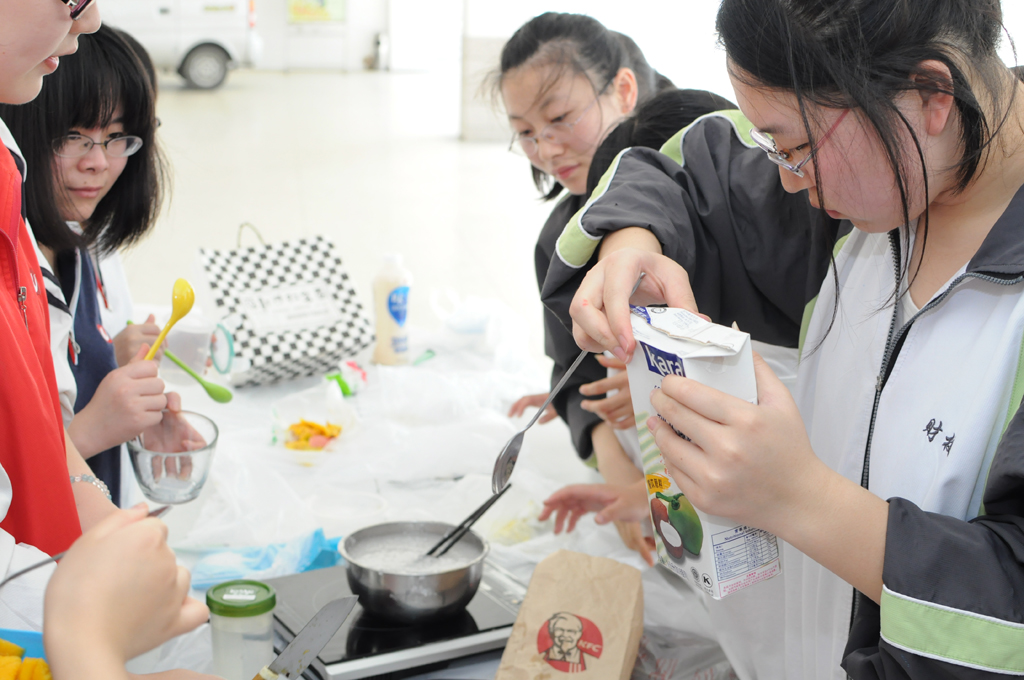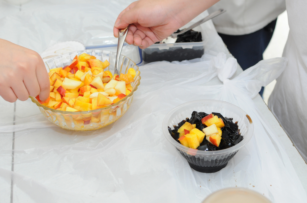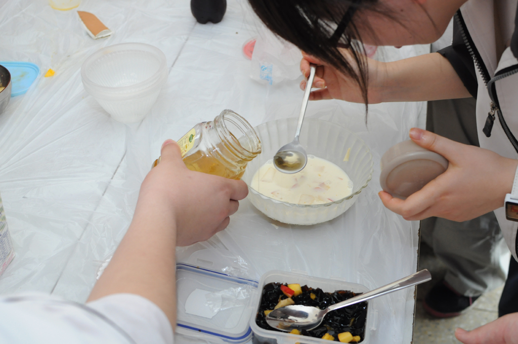 在社长的带领下活动正式开始。社长把事先准备好的主要食材——龟苓膏,从门房的冰箱里拿出来,为了使龟苓膏变得更加美味,社员们在龟苓膏里还添加了蜂蜜、椰汁、西米露和芒果片等多种辅助食材与它搭配。同学们忙得不亦乐乎,制作完成之后,同学们分享品尝着美味缤纷的龟苓膏,个个赞不绝口。在享受美食的同时,社长史雅芸还将龟苓膏的作用及它的历史向成员们介绍,使同学们在动手的同时,了解了许多养生方面的知识。