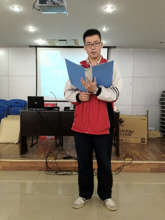 出场顺序由抽签决定,比赛于9月26日、27日在报告厅举行。比赛中,观众们被参赛选手富有真挚感情的朗诵所感染,尤其是099班李阳和胡明智同学的朗诵,虽然语句朴实无华,但饱含真情,很容易引起观众的共鸣,赢得阵阵掌声。