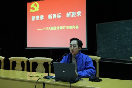 最后,陈旭辉书记强调,每位党员要认真学习党章、不断提高党性修养、提高业务水平,把贯彻落实十八大精神与个人成长结合起来,与促进学校的科学发展结合起来、与做好学校的各项工作结合起来,为我校实现跨越式发展而共同努力奋斗。