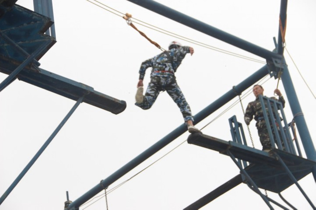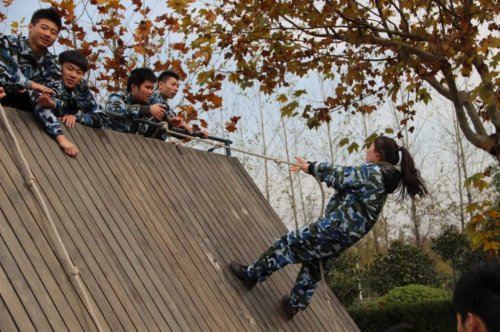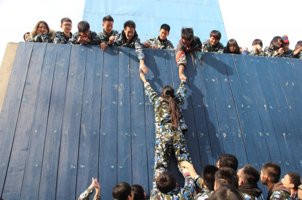 此次训练实行军事化管理,同学们统一身着迷彩服,并体验了一晚帐篷的生活。大家在教官的带领下开展了各式各样的活动,如“信任背摔”、“穿越电网”、“急速60秒”和“高空攀岩”等众多项目,其中“信任背摔”让同学们懂得:冲破畏惧的心理,在团队中,展现彼此间的相互信任,相互支持,相互友爱,令很多同学难以忘怀。训练的最后一天,每个班都要去挑战一个“不可能完成”的任务——“翻越求生墙”。在教官详细的讲解后,同学们立即开展行动,面对四米多高的求生墙,所有人相互合作,不放弃任何一个人,最终成功翻越,胜利过关。