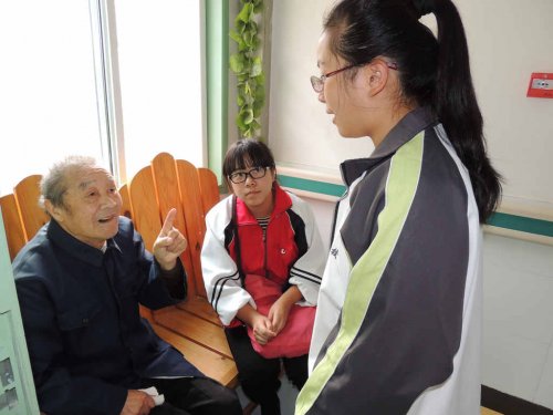 在那里,志愿者们和老人聊天、拉家常,听他们讲年轻时的故事。“其中一位奶奶让我记忆深刻”,51203班的志愿者说“就像奶奶在和自己的孙子聊天一样,聊着聊着,奶奶还激动地哭了起来”。期间,志愿者们还准备了竖笛演奏《茉莉花》等,演唱了军训时候时的歌曲《团结就是力量》等。老人们年纪都较大,有的语速很慢,有的听力很差,但志愿者们一直用百分之百的耐心和他们交流,大家从陌生到熟悉,少了份隔阂,多了份亲近。