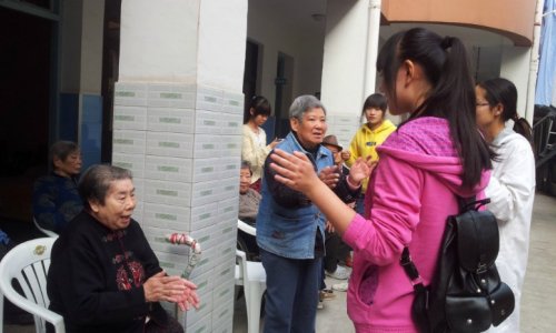“回想起老人们落寞的眼神、弯曲的脊背,我的心不禁揪起来”。活动结束后,志愿者们感慨着说,“其实对老人们来说,最需要的并不是物质资源,更多的是精神上的陪伴,他们要求的只是亲人们的关切。”