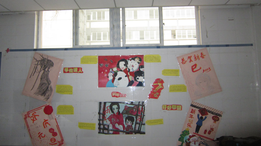 12月中旬,我校夫子庙校区社团部举办了一次“社团新风”迎新活动,由动漫社和文学社联合组织。动漫社成员精心绘制了以“新年”为主题的海报,文学社成员则为海报配以新年贺词。经过近半个月的努力,12月28日,由社团部筛选出优秀作品张贴在食堂文化墙。