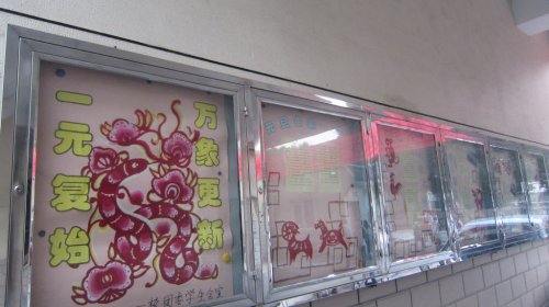 此外,校学生会宣传部还利用橱窗介绍了元旦的来历,各国新年习俗等等,栩栩如生的十二生肖剪纸画透出浓浓的中国风。
