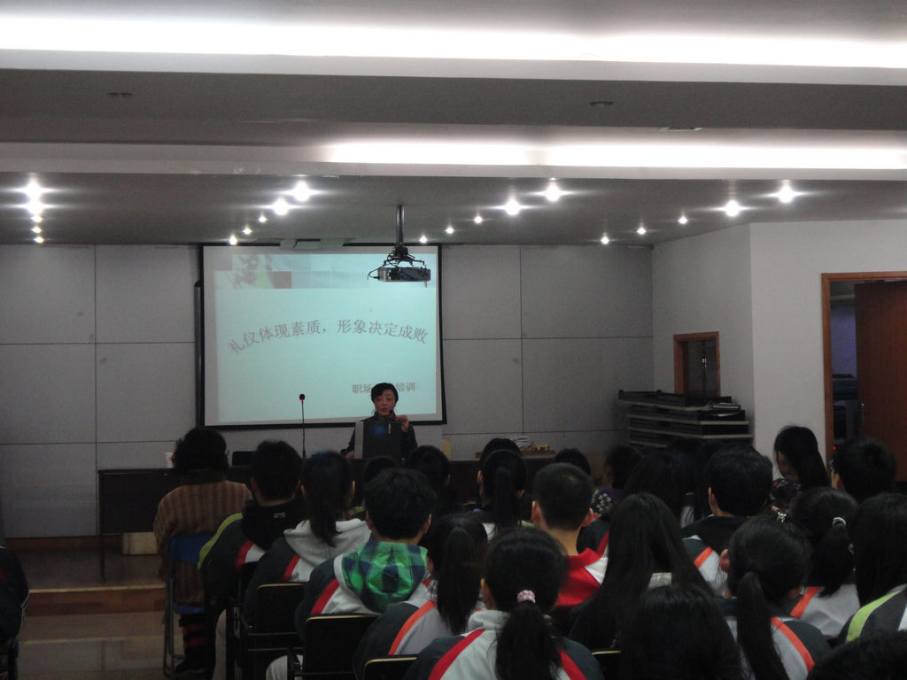 为了使即将面临毕业实习的09级同学能够更好地了解当前就业需求与求职现状,明确职场规范与从业要求,拥有健康积极的就业心理,掌握择业面试等方面的运用技巧,我校本学期在新街口校区开展了针对毕业班学生的《就业教育》系列活动,其中职业礼仪是最基本的培训内容之一,为此,三月份学校特邀请了南京市专业礼仪老师施梅老师为同学们进行了《职业礼仪与规范》的专题讲座。