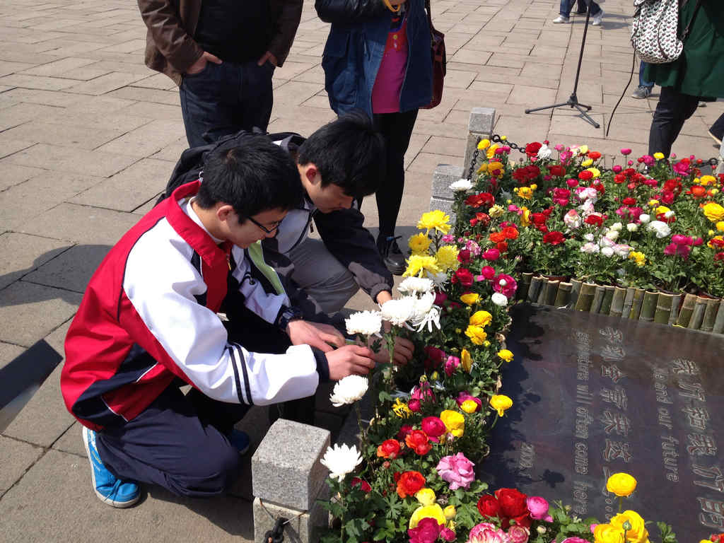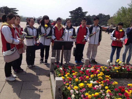 4月6日上午,学校团委组织2012级团支书前往雨花台烈士陵园进行参观和祭奠活动。在纪念馆内,同学们参观了烈士遗物和图文献资料。烈士雕塑群像周围松柏常青,象征着革命烈士的忠魂永垂不朽。沿着石阶向北,宏伟高大的烈士纪念碑映入眼帘,纪念碑脚下燃烧着簇簇火焰的长明灯,象征着革命烈士们的生命重于泰山。怀着对烈士的崇敬及感激之情,同学们依次为先烈们献上了鲜花,并在纪念碑前合影留念。