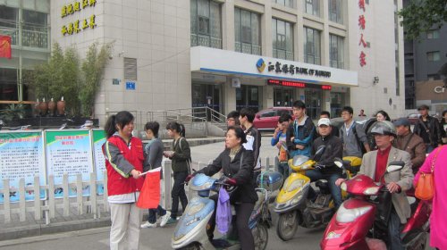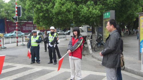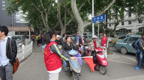 4月30日是全国交通安全反思日,上午九点半,我校团委组织20名志愿者在三山街中华路路口开展了以“向中国式过马路说NO”为主题的交通协警活动。