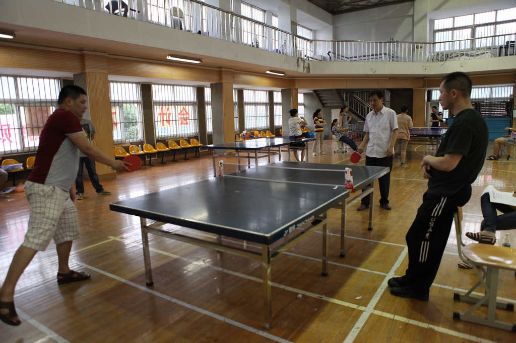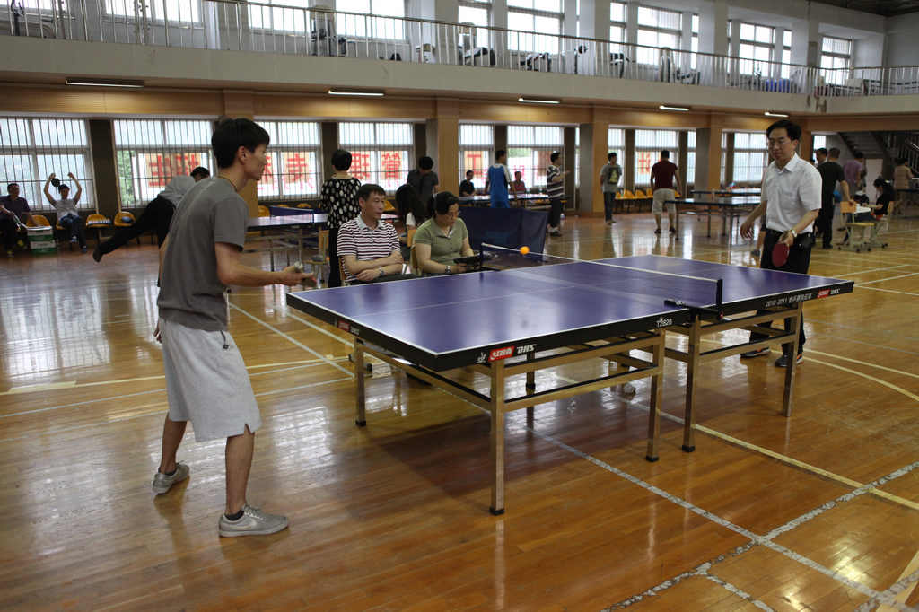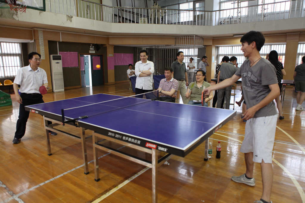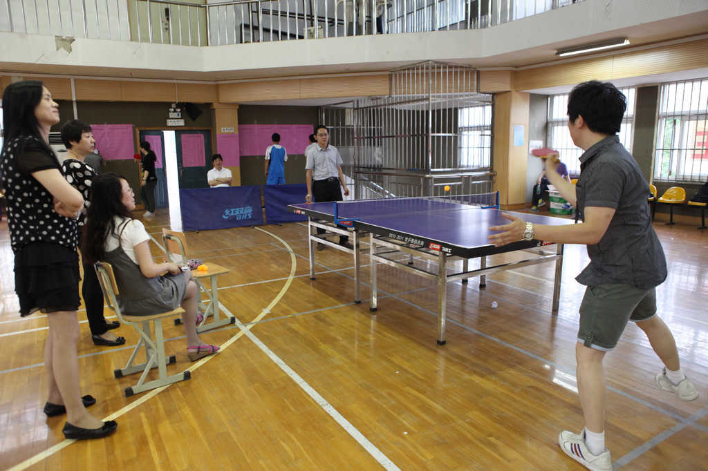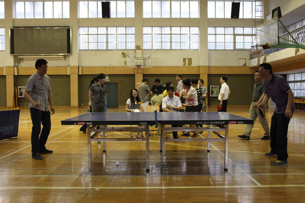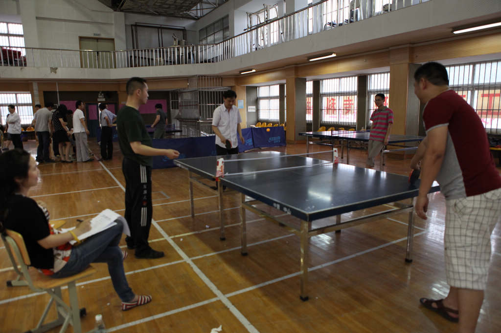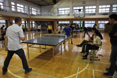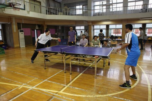乒乓球作为中国的国球,普及率极高,虽然不是专业选手出生,但因为很多老师平时就很喜爱此项运动,加之本学期工会一直组织大家开展体育活动,所以比赛打得异常激烈。各路强手从比赛开始时就不断掀起一个个小高潮。直拍、横拍、扣球、旋转球、弧线球等都得到了一一体现,体育馆内不时传出热烈的喝彩声,兴奋的“好球”声不断。历经近三个小时的激战,分别决出了男子单打和女子单打的冠亚军。男子单打第一名庞晓敏、第二名陈旭辉、高磊、陈阳、第三名万炜、宋文新、丁戈、张镭镭。女子第一名栾兆蔷、第二名徐志敏、第三名戴颖、李励。