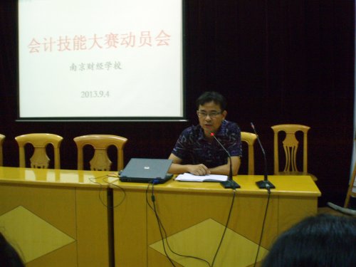 9月4日上午,我校会计系在夫子庙校区报告厅召开2013-2014学年会计技能大赛集训动员会。会计系周会林主任、各位指导教师以及今年省赛获奖选手、2011级选手和经初赛选拔出来的2012级备赛选手共35人参会。动员会上,周主任首先对此次大赛集训做了详细部署,对集训学生提出了殷切的希望;此外,他还对参训学生的训练、生活、考证等事项进行了详细说明,对集训学生的组织管理提出了要求;最后,周主任又对对集训队同学们普遍关心的问题一一作了具体解答,同时激励同学们勤学苦练,迎难而上,迅速投入到有效的技能训练中,为备赛选手提供了强有力的精神支持。