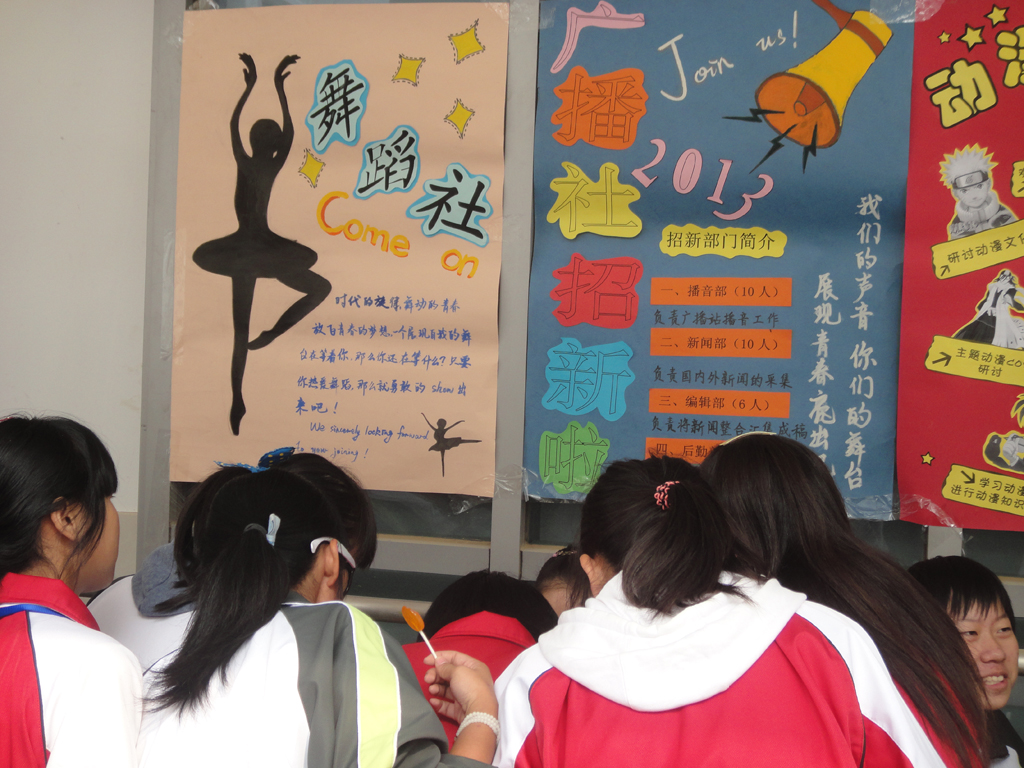 招新活动期间,三个社团都花费了不少的心思。他们围绕自己社团的特色,精心制作了宣传单和宣传展板,向大家展示本社团的风采与魅力,尽自己一切的努力来吸引新老同学前来咨询、报名。在招新的现场,醒目的宣传标语、新颖漂亮的宣传海报、生动鲜活的图片,丰富而简明的展板不断地映入眼帘,让人目不暇接。社团招新点上的负责老师和学生态度诚恳,热情耐心地为新生讲解活动的内容和意义。“兴趣”、“交流”、“锻炼”、“实践”等成为招新宣传中最热门的词汇。为了赢得更多的关注,很多社团的骨干成员们还纷纷拿出自己的绝活,进行现场表演,吸引了众多同学驻足观看。