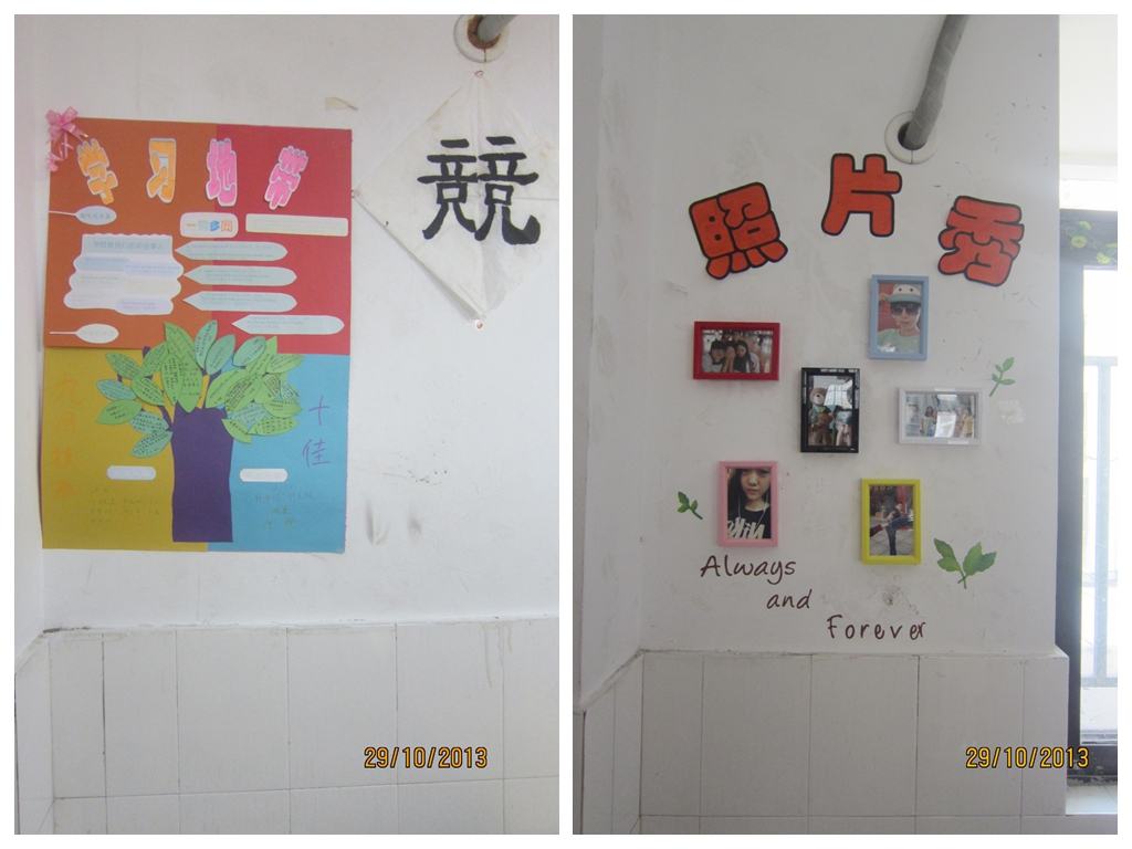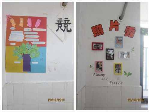 在半个多月的时间里,通过各班师生的共同努力,一面面风采各异的文化墙展现在大家面前。各班文化墙主题鲜明,内容丰富多彩,充满着浓郁的文化气息和班级特色。其中有班级奋斗目标的标语、有硬笔书法或软笔书法的条幅,有贴满照片的记忆树,挂满信笺的心愿墙,还有技能比拼专栏、图书角以及图文并茂的荣誉栏等等。在这渐凉的秋日里,文化墙带给学生们了温暖,使同学们如同置身于一个艺术殿堂,使教室真正成为了同学们的学习乐园。