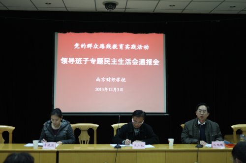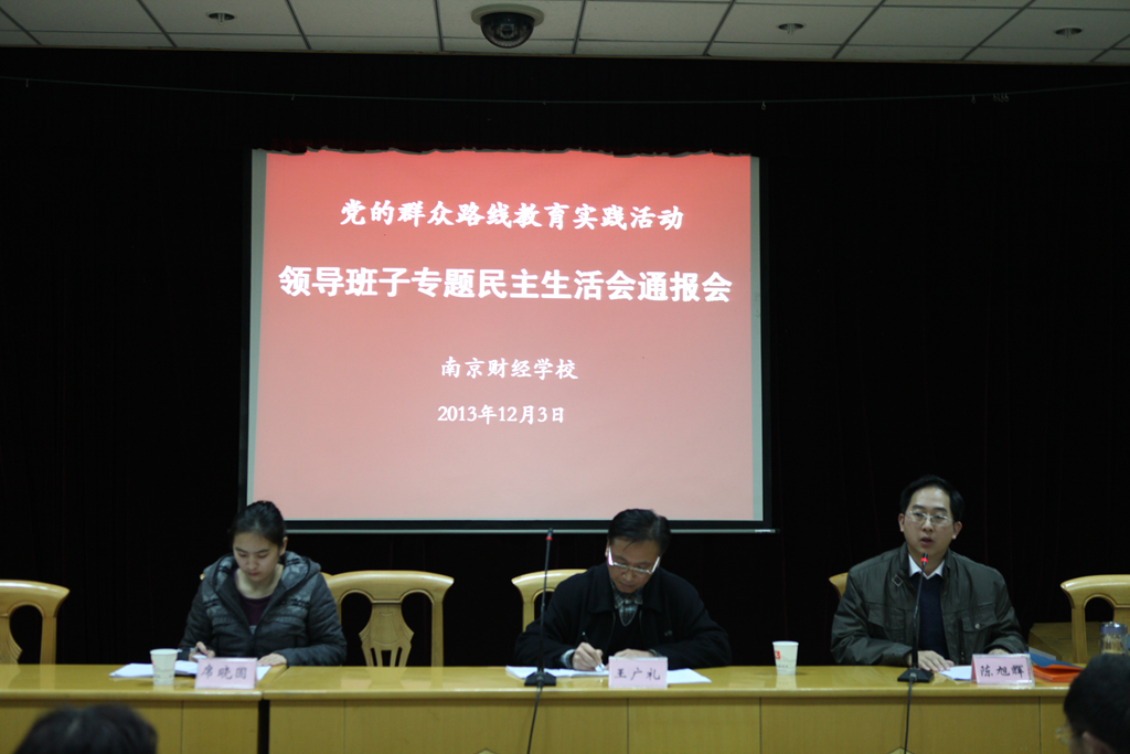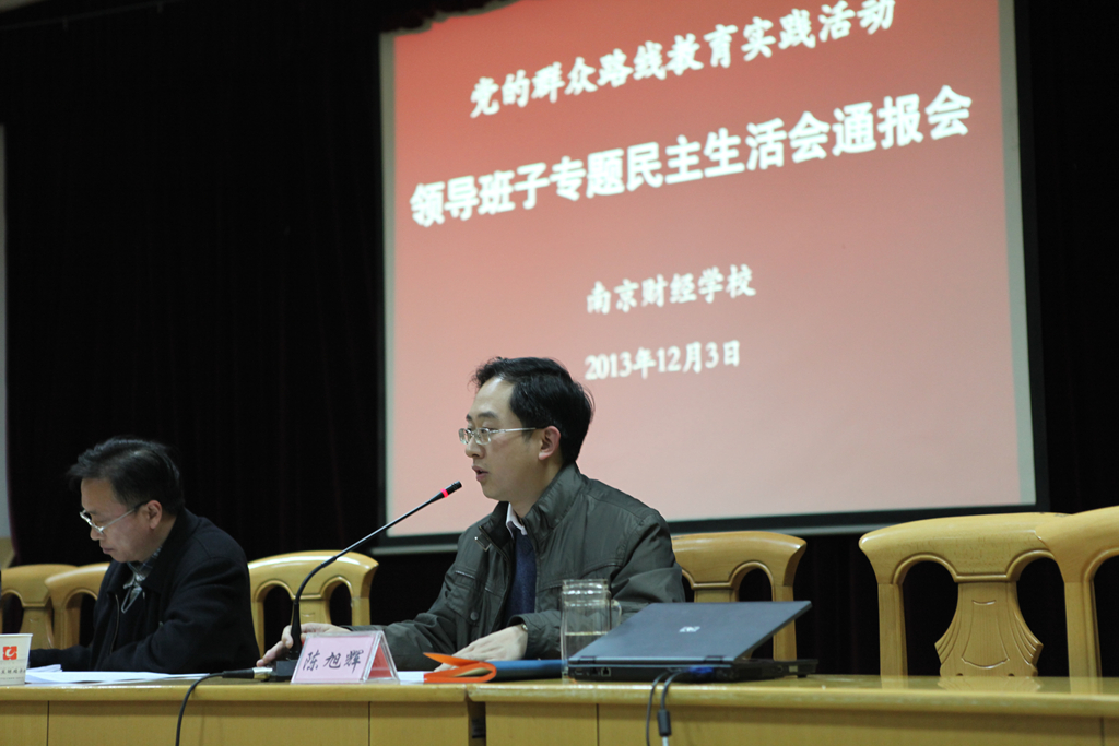 12月3日,我校在夫子庙校区报告厅召开了党的群众路线教育实践活动专题民主生活会情况通报会,校党委书记陈旭辉代表学校领导班子通报了专题民主生活会情况,市委教育工委第三督导组王广礼处长作了讲话。