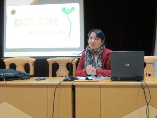 作为一名经验丰富的优秀班主任,李洋老师用她幽默风趣的语言、平易近人的亲和力,感染了所有的新教师。谈到班主任的工作,李洋老师不仅从理论上给予新教师指导,而且根据自己的切身工作经历,把总结的经验毫不吝啬的和新教师分享。
