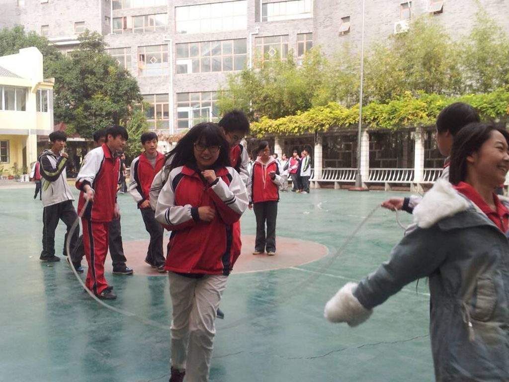 比赛分为11月29日和12月3日两天进行。11月29中午12点40分,在记分员的一声令下,1314班首当其冲为长绳比赛打响了第一枪。只见他们班的10名健将敏捷又熟练地从跃起的长绳之间来回穿梭,争分夺秒;一旁的拉拉队员们扯着嗓子为班级为同学加油打气;班主任也时不时的指导着甩绳的同学,告诉他们“要配合运动员的步伐,适当地加快速度”。1314班全体成员所展现出的班级团结凝聚力,值得所有班级同学赞扬和学习。