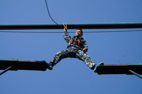 活动期间,各小组的同学们交替经历了“信任背摔”、“空中断桥”、“攀岩”、“生死电网”、“挑战5分钟”、“驿站传书”、“毕业墙”、“真人CS”等各项训练活动。其中“挑战5分钟”让许多同学玩得很开心,该项训练由“一圈到底”“不动森林”以及“移动高尔夫”等若干小项目组成,虽然在成功完成各项任务前许多小组失败了一次又一次,但是大家还是坚持不懈地尝试,直至获得最终的胜利。另一项深受同学们喜爱的活动则是“生死电网”。该活动要求小组成员配合在不触碰“电网”的情况下将团队中的六名成员挪动至网的另一边。而”驿站传书”也给同学们带来了许多快乐,这项活动旨在提高同学间的沟通能力,要求同学们在不出声的情况下把纸条依次传递并将正确内容写至白板。一个接一个的任务把拓展推向高峰。同时在活动的间隙,培训师们还会让任务失败的同学们表演一些小节目,如轮流表演“告诉你一个秘密”,让大家玩得尽兴。刚开始有的同学感觉羞涩,难以大方表现,但是在培训师和同学们的鼓励下,每一位都很好地表现了自己。