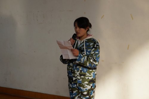 12日一大早,同学们一赶到基地便迅速换上了迷彩服。尽管已是接近冬至节气,但这丝毫阻挡不住同学们的热情。在体育馆中,在校党委仇国宏副书记和学生代表戴雯丽同学在体育馆的一番致辞、发言之后,此次的素质拓展正式拉开了帷幕,各位培训师领着各小组前往训练场活动开来。