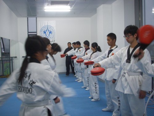 2013年12月23日下午四点,会计系对跆拳道社团的活动进行了一次现场采访。据了解,该社团由一名社长,一名副社长,九十名学员组成。学员分成四组,兰轩老师担任社团的指导老师。活动时间定为周一至周四下午4:05-5:30,活动地点为运动场或跆拳道室。
