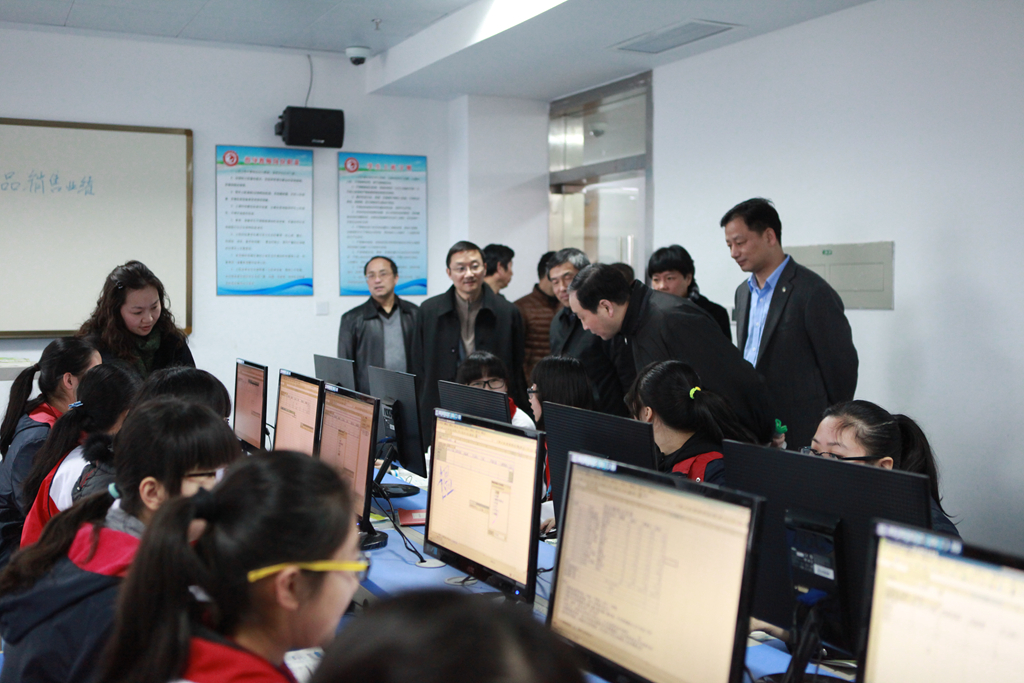 此后,在几位校领导的引导下,市局机关同志分两组参观了江宁校区二楼阅览室、五楼学生机房、九楼中心机房、一楼监控室、风雨操场、学生宿舍、食堂和教学楼等场所,并现场观摩了学生在网络机房的课堂教学和校技能训练队的日常训练活动。参观过程中,我校基于云计算理念而进行的数字化校园建设,地源热泵、太阳能等新型环保技术的应用以及朝气蓬勃的学子风貌给各位领导留下了深刻的印象。