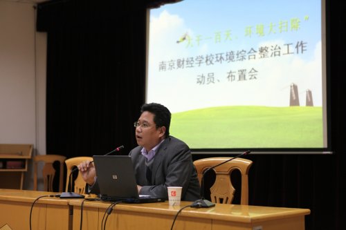高磊副校长首先传达了市委、市政府办公厅对开展环境整治工作的指示精神和要求。接着,他结合学校的实际情况提出了具体目标,要求在全校师生中加大宣传力度,校园分片包干,责任到人、责任到班,保证不留任何死角,建立检查评估的长效机制,并限期整改,全面改善校园环境。