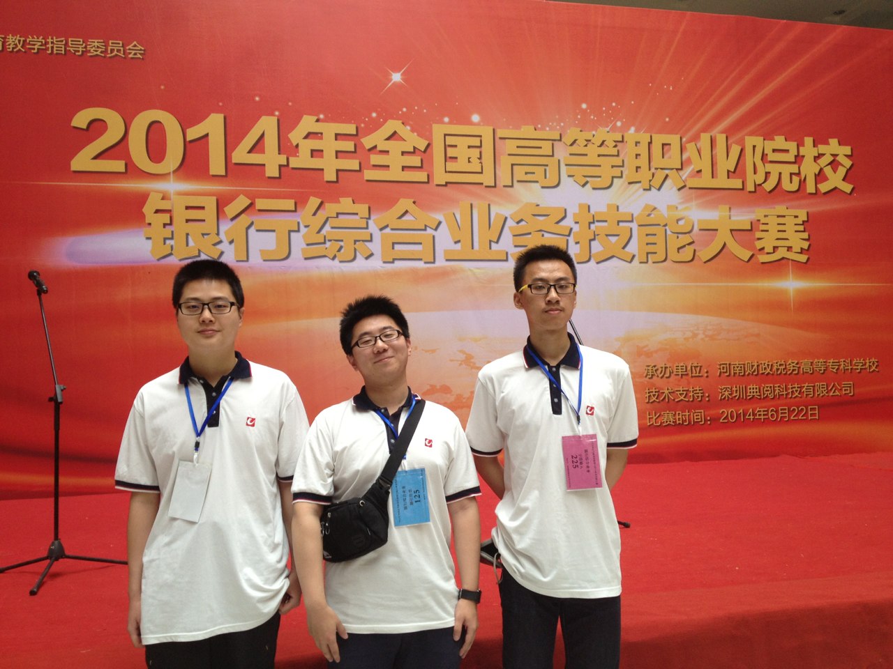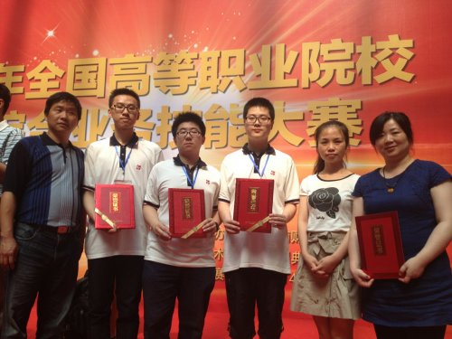 6月22日, 由金融系黄荣桂副主任带队,戴颖副主任、教研组长曹金融老师为指导教师,吴文轩、邓嘉诚、张俊杰等三位同学组成的我校金融系10级金融管理与实务专业队,赴河南省郑州市参加了“2014年全国高等职业院校技能大赛银行综合业务技能大赛”。经过激烈角逐,我校代表队荣获团体全国二等奖,吴文轩同学荣获个人单项字符输入技能全国一等奖,邓嘉诚、张俊杰两位同学分别获得个人单项传票算、点钞的全国三等奖。