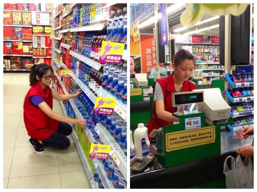 通过与苏果超市实训主管的交流和现场探访,老师们了解到同学们的表现都非常出色,他们适应能力强,心理素质稳定,专业技能扎实,对顾客热情洋溢、服务周到,许多同学都受到了师傅们的表扬。比如,张府园店邹蝉等同学在长假期间每日流动现金万元多,均无一分差错;清凉门店梅芳等同学作为领队的小组长,对每日工作都有相应的日志和总结,表现出良好的职业道德与职业素质;长虹路亚东城门店的陈璇等同学一直到中秋节当天还坚守在岗位上,兢兢业业。各门店的实训主管对同学们的表现也大为赞赏。