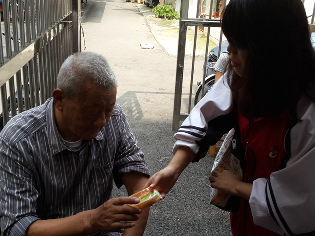 9点还不到,志愿者们便早早地来到学校门口集合,在活动负责人朱玙婷、徐梦媛、朱佳佳带领下,乘车前往爱杺树居家养老服务中心。志愿者们的到来让正在聊天的老人们十分惊喜。在向养老院的工作人员了解了相关情况后,志愿者们来不及休息就分别走进老人的房间,为老人们送上了美味的月饼,并为他们打扫房间、整理衣服被褥等。做完卫生之后,志愿者们三三两两地围坐在老人们身边,有的陪老人聊天、有的为老人捶背,还有的即兴唱起了红色革命歌曲。老人们讲述了他们年轻时与家人、孩子的故事,仿佛过去又浮现在他们的脑海中。在志愿者们满腔热情的感染下,老人们的心情十分愉快,仿佛瞬间年轻了好多岁,也变得健谈了许多,有的老人还主动给志愿者们看他们儿女的照片,分享他们回忆的点点滴滴。他们虽然不会用华丽的辞藻来表达自己内心的情感,但是表情中却洋溢着幸福;他们感慨现今生活的优越,教育志愿者们要学会珍惜现在的美好生活,努力学习和工作。