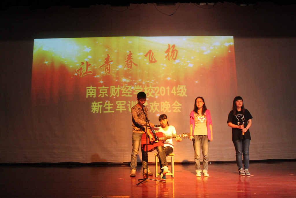 晚7点,全校师生相聚在军训基地礼堂举行了一场精彩纷呈的军训文艺晚会。晚会一开始,学校仇国宏副书记为优秀学员代表颁发了奖状。文艺表演中,动人的歌曲、优美的舞蹈,展现出大家青春活泼、多才多艺的一面。信息系51401班的Cosplay表演展现出了动漫专业的特色,金融系51405班的对唱《童话》温暖动情,点燃了全场的热情,而会计系51410班同学带来的舞蹈串烧也是精彩夺目。此情此景,老师们也按捺不住激动的心情纷纷上台小露才华。陈硕和陆文婷老师搭档的《飞鸟和鱼》让人赏心悦目;兰轩和陈硕两位老师的对唱《因为爱情》珠联璧合;达艺峰老师一曲《稳稳的幸福》向同学老师和教官送上了美好的祝福;会计系钱云红副主任一首动听的《东西南北兵》更将晚会推向了高潮,赢得了同学们阵阵的喝彩声。最后,军训晚会在合唱歌曲的《送别》中落下帷幕。