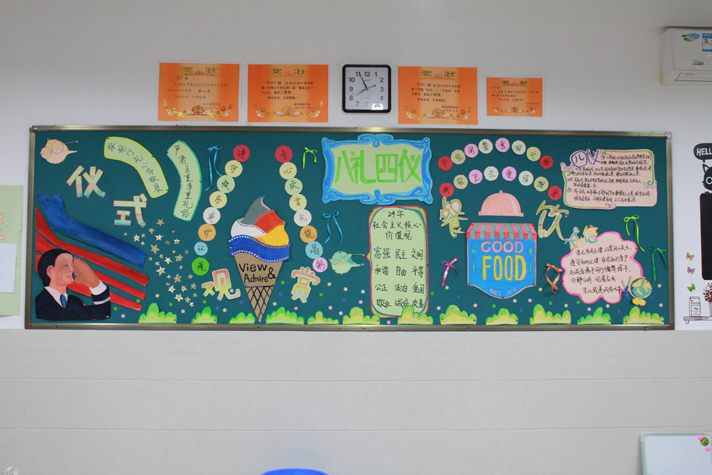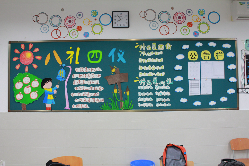 为加强校园精神文明建设,营造良好的校园文化氛围,培养学生爱校如家的意识,学校会计系江宁校区于11月25日举行了以“八礼四仪”为主题的黑板报评比活动。