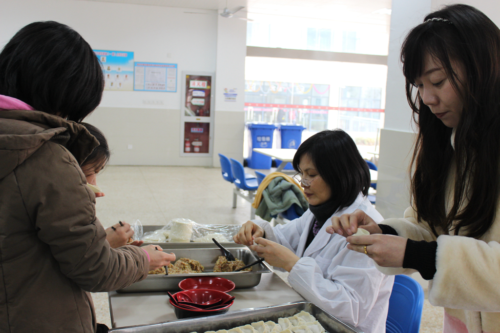 为了迎接新年的到来,营造一个欢乐和谐的新年气氛,2014年12月31日上午,校江宁校区伙食管理委员会配合学校开展2015年教职工迎新年“包饺子”联欢活动。学校伙食管理委员会主任高磊、副主任朱春健、沙敏智亲自牵头,认真组织、全面布置,为此次联欢活动做好了充分的前期准备工作。