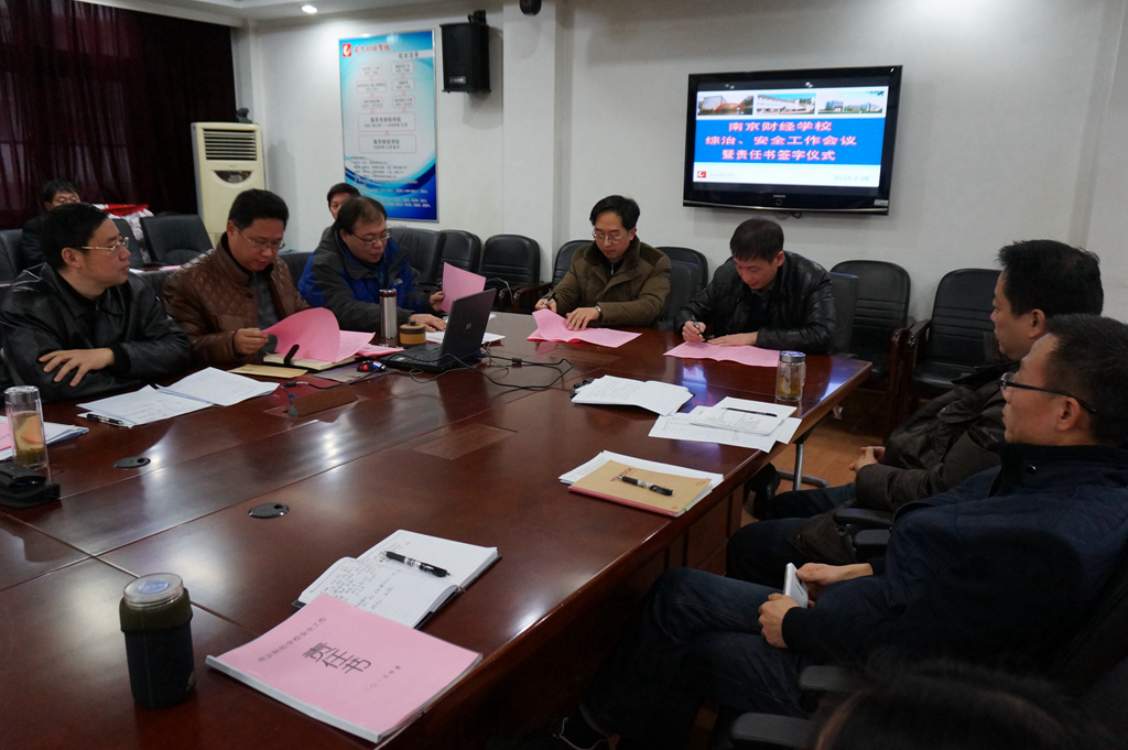 接着,陈旭辉校长与各系部负责人签订了《南京财经高等职业技术学校综合治理、安全工作责任书》。《责任书》的履行情况,也将作为各部门负责人年终评优、评先考核的重要依据。平安校园人人有责,只有真正强化综合治理和创建平安校园的责任意识,才能确保学校的安全和谐与稳定。