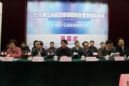 3月29日,2015年江苏省职业学校财会专业技能大赛暨江苏省第35届珠算技术比赛在泰州落下帷幕。本届大赛由江苏省教育厅、江苏省财政厅主办,江苏省职业技术教育学会、江苏省珠算协会、江苏省会计学会共同承办。大赛共分会计手工账务处理、珠算、会计电算化三大类,设有珠算、单指单张点钞、多指多张点钞、传票翻打、票据录入、手工账务处理、会计电算化七个竞赛项目。共有来自13个省辖市的306名选手参加了此次大赛。