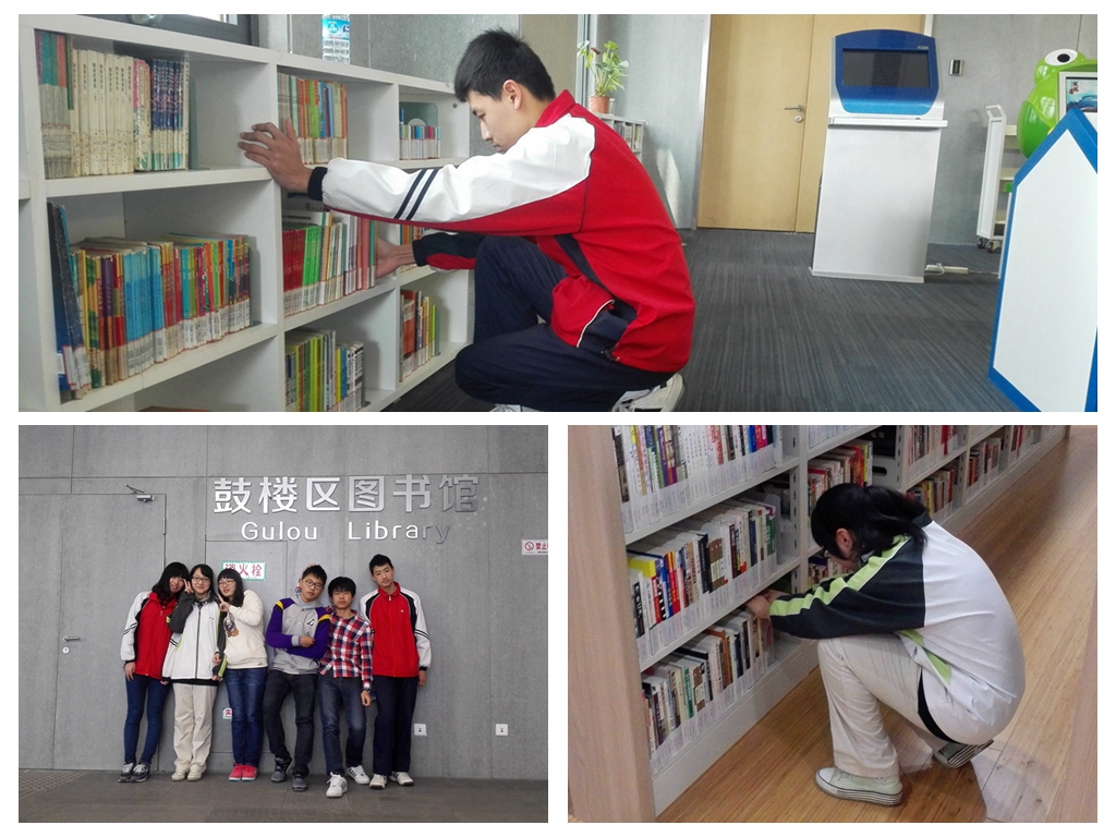 4月12日上午,51411班部分同学在班主任严华老师的带领下来到鼓楼区图书馆,在浓浓的书卷香中,开始了他们的志愿服务活动。同学们主要负责阅读者管理和书籍归位两方面的工作,为大家营造一个安稳、舒适的阅读环境。在图书馆管理员的带领下,他们很快的熟悉了自己的工作内容。为了给大家留出更多的空位,他们将占座的书籍整理好放置桌子中间;为了让大家能够安静的读书,他们将温馨的宣传标语放在醒目的地方;为了让那些图书能够更方便得被寻找到,他们协助管理员及时将书籍上架归位……。在短短的两个小时的活动中,大家都坚守着自己的岗位,踏踏实实地做好每一件事。