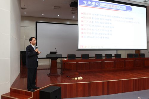 参观结束后,老干部们在学校报告厅听取了学校陈旭辉校长所做的专题报告。陈校长首先对各位老干部们的到来表达了热情的欢迎,对他们一直以来对于学校的关怀和支持表示真挚的感谢。接着,陈校长就历史沿革、校区分布、近年所获荣誉、师资水平、管理模式、专业建设、课程建设、人才培养、社团建设、校企合作、升学就业、社会服务以及“十三五”发展思考等方面将学校的各项工作情况向各位老干部们做了详细的汇报。最后,陈校长再次对老干部们的到来表示由衷的感谢,希望他们继续一如既往地关注和关怀学校的发展,为学校出谋划策。