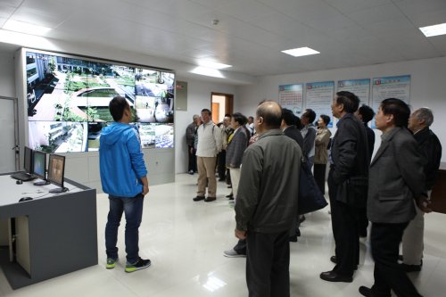 9点一刻左右,老干部们乘坐大巴车到达江宁校区门口,学校校长陈旭辉、副校长李明庚等一同到门口迎接,并陪同老干部们先后参观了学校的食堂、宿舍、操场、体育馆、监控中心、各专业实训室等场馆和设施。在参观过程中,老干部们兴致勃勃,认真地倾听校领导的介绍,不时发出赞叹,为学校近年来的快速发展由衷感到高兴。他们认真地考察每一处场馆设施,不时地提出一些问题,从各个方面了解学校的教学情况和学生的生活细节。在食堂里,他们细心地查看了食堂的卫生情况,关心每一份饭菜的价格;在宿舍中,他们体贴地询问学生的用水、用电、洗浴以及宿舍安全等各种问题;在操场和体育馆里,他们问起学生的体育锻炼情况,希望保证场馆的利用率,保证学生的安全;在监控中心,他们详细地了解了学校的安保工作的日常运行;在实训室,他们询问了学校的专业建设和设备投入使用情况。