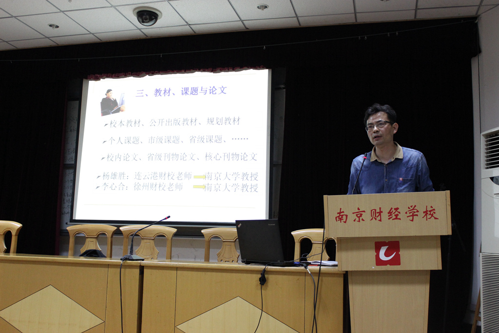 “教师的成长依赖于学校平台以及个人不懈的追求,教师的付出与收获对等,没有辛勤的汗水就没有丰硕的果实”……一句句掷地有声的话语在我校夫子庙校区一楼报告厅响起。台上,主讲人精彩纷呈;台下,聆听者聚精会神。6月5日,学校会计系的周会林主任作为名师室工作室的负责人给全系的教职工开设了一场题为《教师的成长、付出与收获》的讲座。