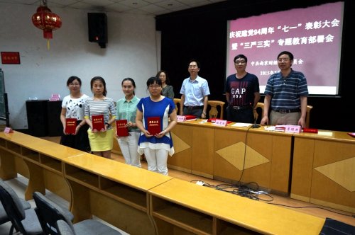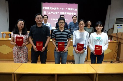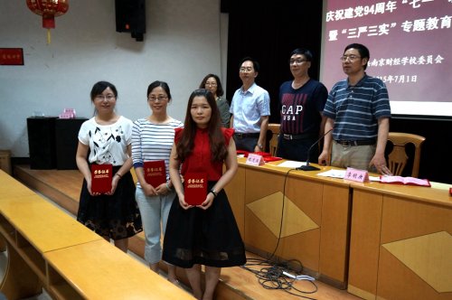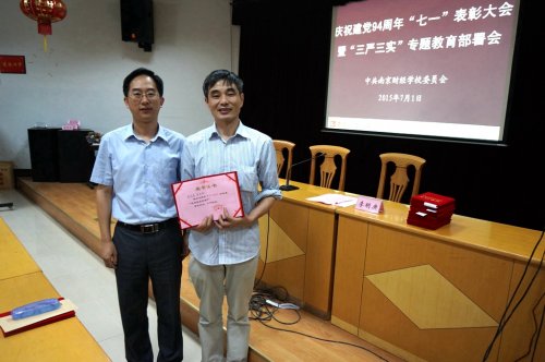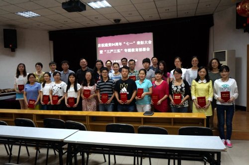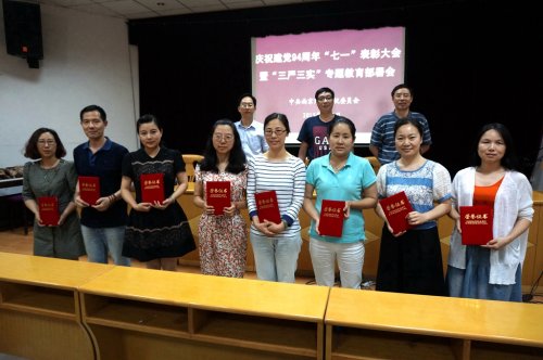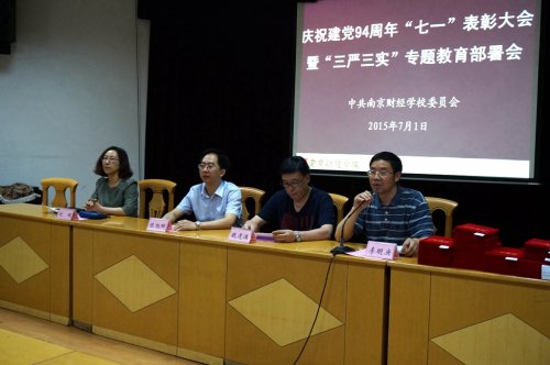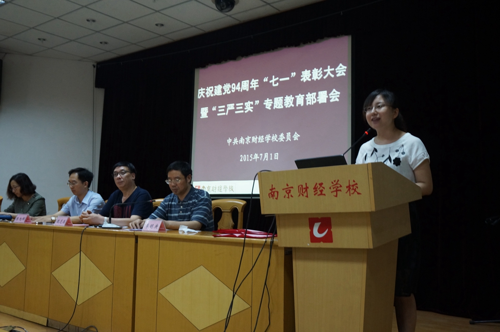 7月1日下午,我校庆祝建党94周年“七一”表彰大会暨“三严三实”专题教育部署会在夫子庙校区报告厅隆重举行。会议热烈庆祝中国共产党成立94周年,并对校先进基层党组织、校优秀党员、校党员示范岗、校党员示范班、校党员示范课及校优秀微型党课获得者进行了表彰,对“三严三实”专题教育进行了学习和部署。学校全体校领导、中层干部、教职工党员80余人参加了大会。会议由副校长李明庚同志主持。