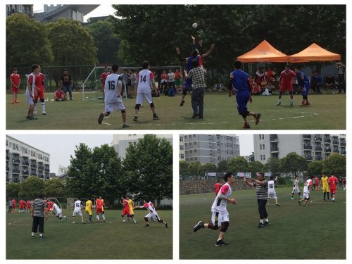 比赛采取循环积分制。比赛中,队员个个生龙活虎,敢打敢拼,始终神情专注,眼睛紧盯球的方向。行云流水的快攻,争分夺秒的抢球,火花迸溅的拦阻,令人窒息的远投,场面紧张刺激,高潮迭起,让现场观众热血沸腾,赞叹连连。三门球运动对抗非常激烈,加之场地比较滑,赛场上,不少队员多次摔倒在草地上,身上多处擦伤,但他们仍迅速爬起积极拼抢,忍着疼痛继续比赛,充分展现了我校学生良好的精神面貌和全面的优秀素质。