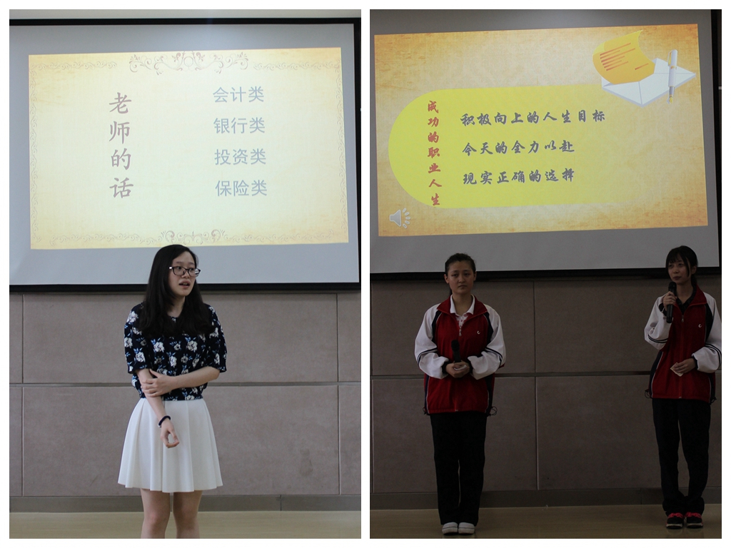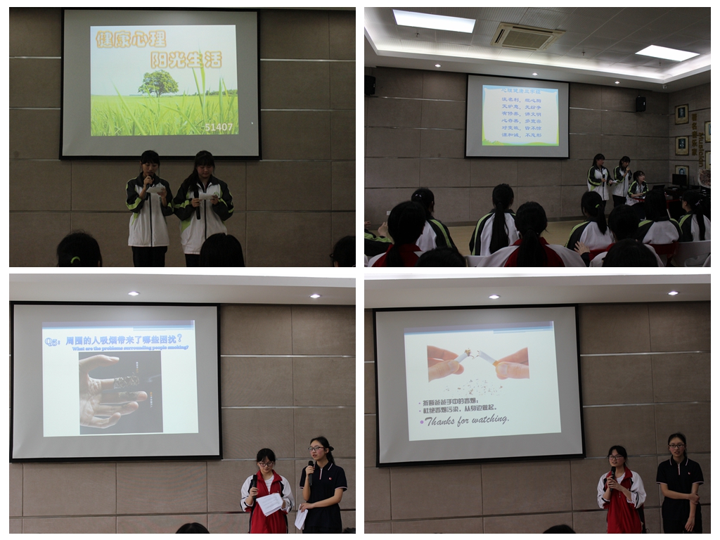 会计系1407班的主题班会以“心理健康”为题,主持人带领大家从“心理健康的概念”、“调节不良情绪的方法”、“同学们生活中的心理问题”几个方面做了深入探讨。班会最后,《心理健康三字经》的齐声朗读进一步加深了同学们对心理健康的认识。金融系1305班以“未来你好”为题,开设了一堂“职业生涯”主题班会。班会从“自我认知”、“职业兴趣”、“职业发展展望”三个方面进行阐述,结合数据分析、专家建议、小游戏和小故事等让大家对职业生涯规划有了深刻认识。其中,学校心理健康教育中心陶老师和班主任高老师也结合自己的学习和工作经验给了同学们很多宝贵建议。信息系1501班的“世界无烟日”主题班会,以图文并茂的方式阐释了吸烟对人体自身、对环境、对周围人(吸二手烟)的危害。最后,主持人从青少年乃至全中国的现状出发,提出了“世界无烟日倡议”,并介绍了戒烟方法,号召同学们劝诫家人及身边的人一起戒烟。