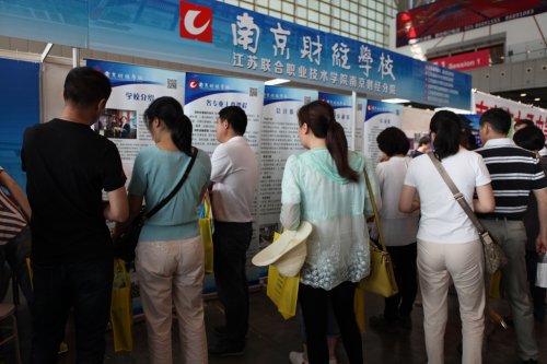 6月26日上午,在陈旭辉校长的带领下,我校全体校级领导、中层干部和招生就业培训部的老师们积极参与由南京市招办在南京国展中心主办的2016年南京市中考招生咨询会。