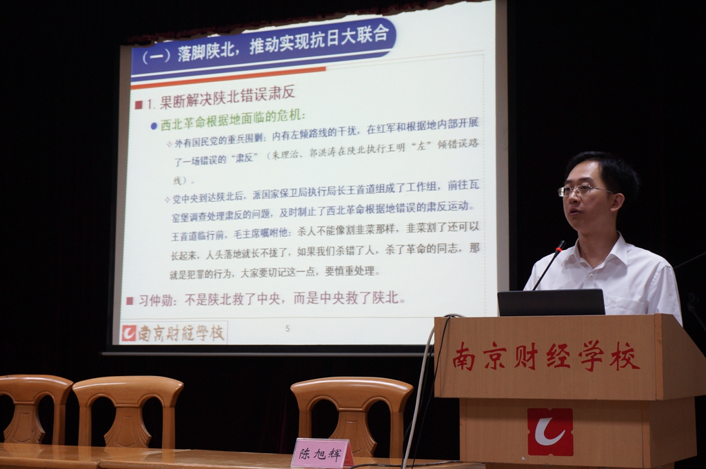 2016年6月29日上午,我校庆祝建党95周年“七一”表彰大会在夫子庙校区报告厅隆重举行。会议热烈庆祝中国共产党成立95周年,并对党员“三示范”活动(党员示范岗、党员示范班、党员示范课)先进典型及优秀共产党员进行了表彰。陈旭辉书记为全体党员上了“两学一做”专题党课。学校全体校领导、中层干部、教职工党员80余人参加了大会。会议由党委副书记仇国宏同志主持。