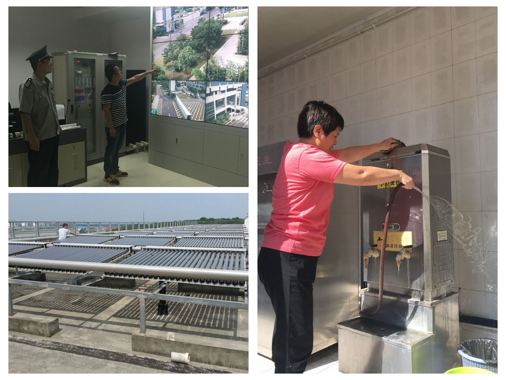 各校区由后勤分管校长牵头,后勤工作部主任、安全干事、水电维修人员参与组织校园安全隐患排查专项整治检查工作。检查重点包括:消防设施设备、监控视频系统、周界报警系统、配电房、供水、供电、供气系统、食堂、锅炉房、太阳能系统等重点特种设备运行维护情况;学生宿舍、地下车库、食堂、体育馆、报告厅等重点场所的消防安全;学校饮用水安全工作落实,门卫安保履职,学校岗位安全责任落实情况,学校消防制度落实情况;校舍安全和暑期维修工程项目安全等等。
