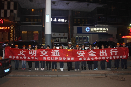 为进一步增强市民的文明交通意识,营造文明和谐的交通环境,根据《南京市交通秩序治理三年行动计划(2016-2018年)》的要求,11月25日,南京财经高等职业技术学校团委与原南京市女子中等专业学校团委联合南京市交警五大队,在广州路与上海路交叉路口举行了“文明交通,安全出行”的志愿服务活动。
