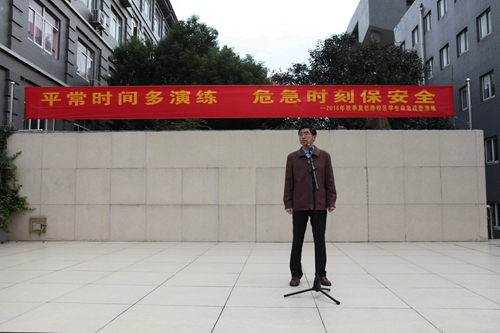 演练结束后,谭书记对此次活动做了总结。讲话中,谭书记对这次的演练给予了充分肯定,并一再强调了这次演练的重要性。他希望,同学们都能够积极参加学校各项安全常规演习,只有平时多演练,使抽象的安全教育变成具体的实战演习,使同学们了解灾害发生时的应对措施,才能切实提高应急处置和自救自护能力,有效保障生命安全。